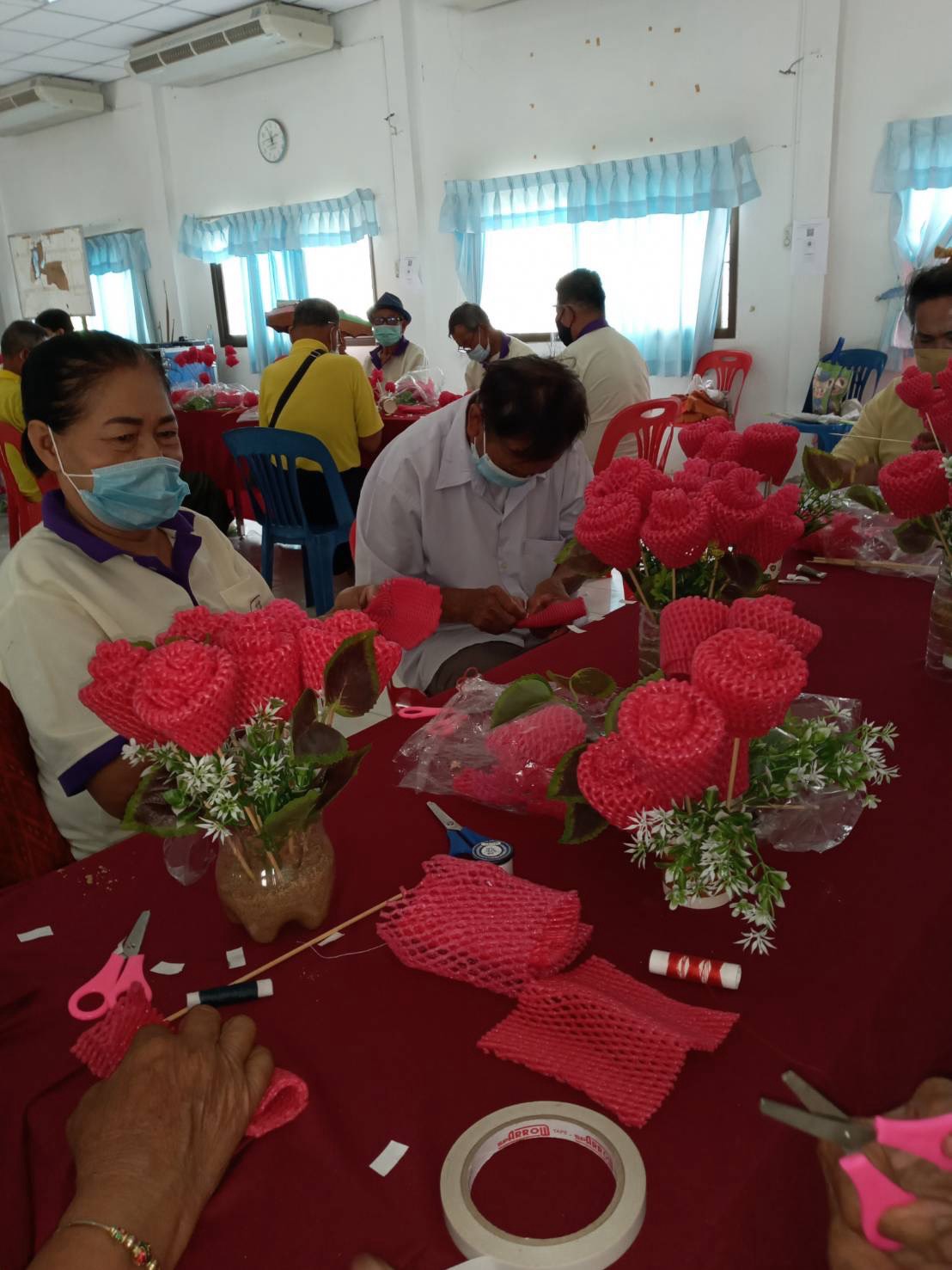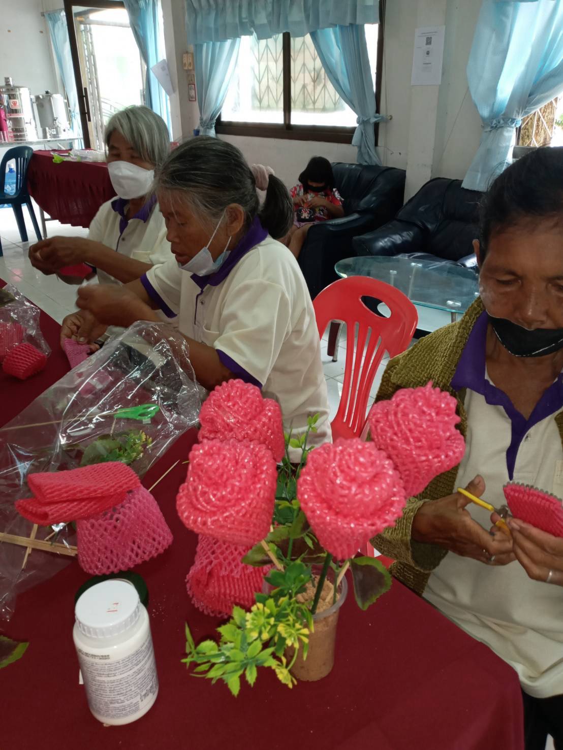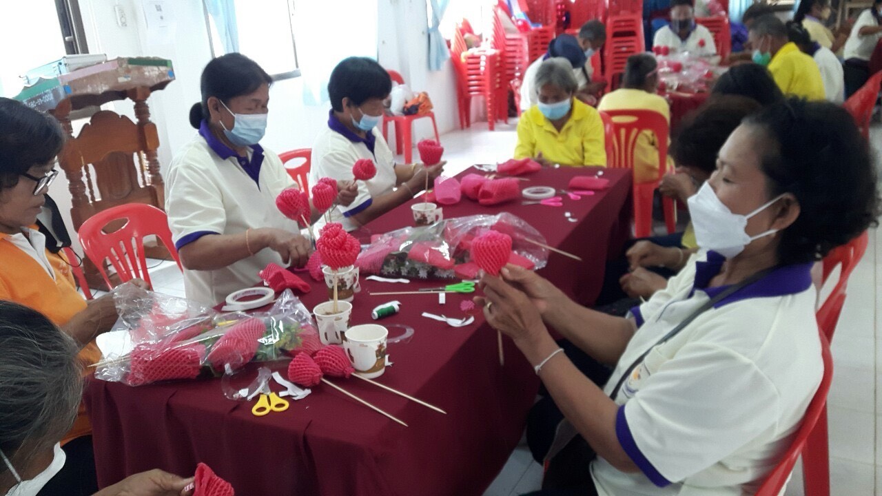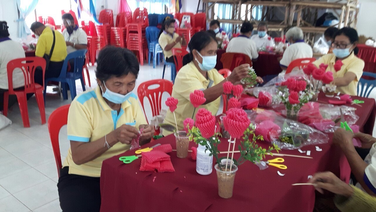 โรงเรียนผู้สูงอายุตำบลดอนหว่าน อบรมการทำดอกไม้ประดิษฐ์จากโฟมห่อผลไม้ เพิ่มพูนความรู้ สร้างรายได้ให้ตนเองและครอบครัว