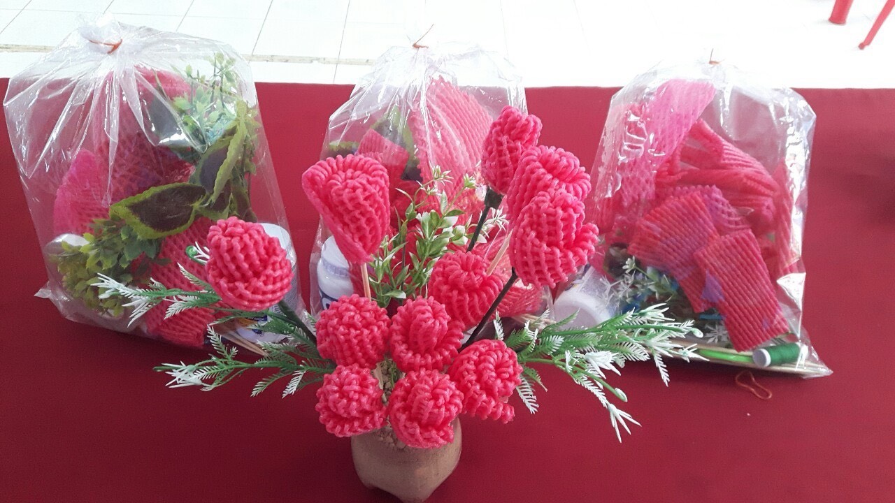โดยการจัดการขยะแห้งที่ไม่สามารถขายเป็นขยะรีไซเคิลได้ นำมาประดิษฐ์เป็นดอกไม้ สวยงาม ด้วยสีสันของโฟม ที่สวยสดใส โดยชมรมผู้สูงอายุตำบลดอนหว่าน